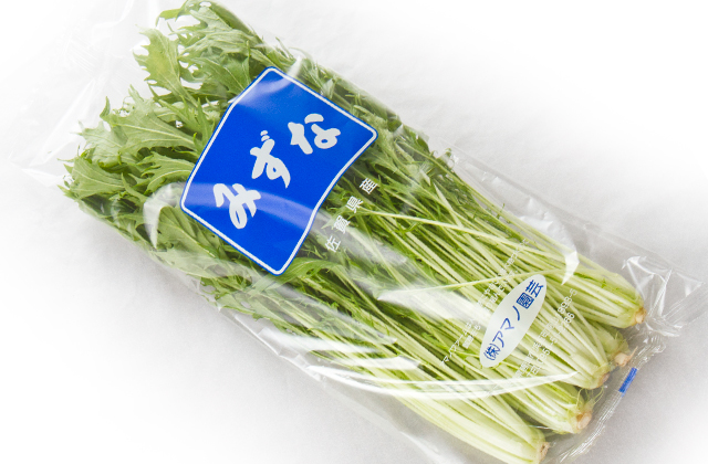 シャキシャキと歯切れのよい食感が特徴の「水菜」。クセのない味わいでサラダやお浸し、鍋物など幅広い料理に使えます。
