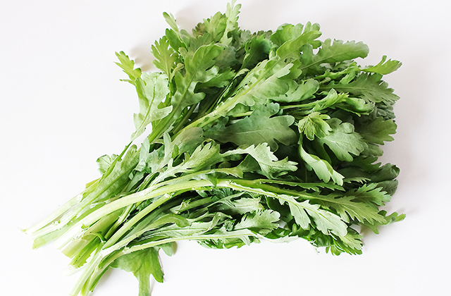 春菊はアクが少ないので、下ゆでせずにお浸しや鍋物に使えます。一般的な春菊を生でサラダにするには、やわらかい葉先だけを使うとよいでしょう。